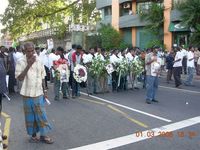Der "Nationale Friedensrat", dem führende katholische Laien angehören, hat am Morgen des 3. Dezember in zwei getrennten Presseerklärungen unter den Überschriften „ Aufkündigung des Waffenstillstandsabkommens wird die Spirale der Gewalt weiter anheizen“ und „Krieg gegen Terrorismus führt zu mehr Terror“ vor den Folgen der bevorstehenden Eskalation gewarnt. Das Foto zeigt den Trauerzug für den Abgeordneten Maheswaran am heutigen Tag in Colombo.