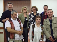 Das Foto zeit: pax christi-Vizepräsidentin Wiltrud Rösch Metzler in Vukovar mit der Aachener Friedensfachkraft Annett Werner und ihren Kollegen Spasoje Kulaga und Luciano Kaluza, Projektkoordinatorin Karen Siebert und den ehenmaligen Friedensfachkräften Ana und Otto Raffai.
